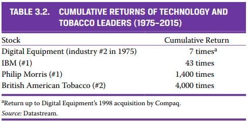 A similar concept is discussed regarding the technology and tobacco industries. Decades ago, it was recognised that the tech industry was the future, while the tobacco industry was destined to decline. The intuitive thought might be to go long on tech stocks and short on tobacco stocks, but such decisions can have the opposite effect. Although tech giants' market values have multiplied significantly, tobacco giants' market values have increased even more, sometimes by thousands of times. This is because the tobacco industry was largely ignored, leading to extremely high expected returns. Short selling, as an under-appreciated craft, could also yield attractive returns by the same token.