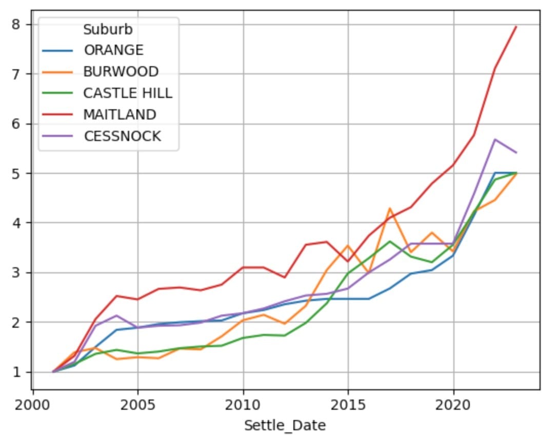 Neglecting Regions - Other examples involve comparing Sydney with regional areas or other states, assuming Sydney’s growth is unmatchable. While regional areas and other states do tend to have higher yield than Sydney, it is not true to assert that their capital growth is necessarily less than Sydney’s. One such example is Maitland, which has persistent, long-term outperformance over almost every single Sydney suburb despite having higher rental yields.