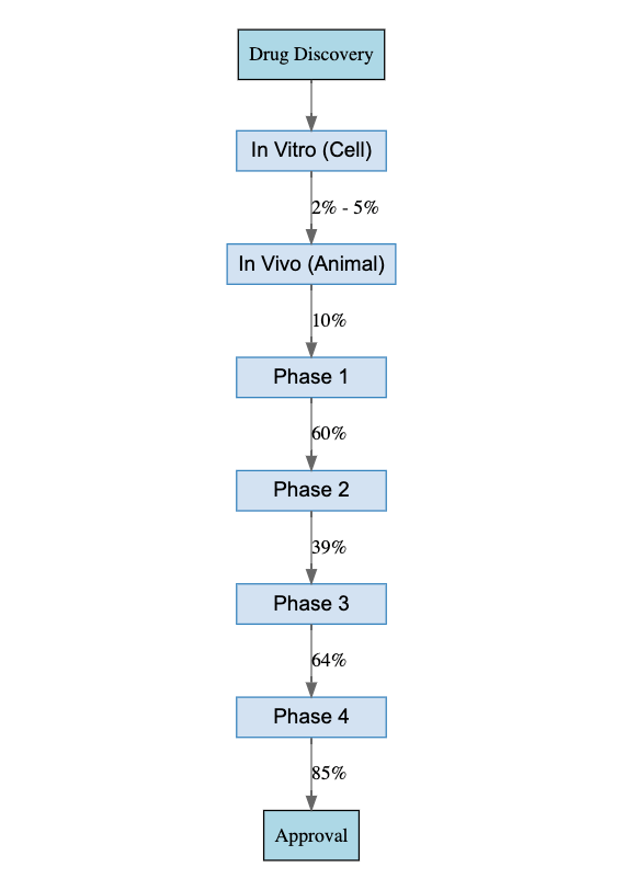 Once in vivo screening concludes, drug testing transitions from animals to humans. Typically, this involves four phases of clinical trials, each serving a different purpose.