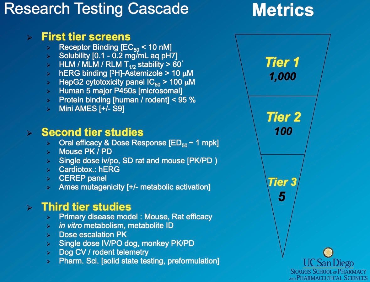 In vitro screening usually relies on research assays, before moving on to in vivo screening using animals such as dogs, rats, or monkeys. Observations from the pharmacokinetic studies in animal trials can be used to inform the initial dosage for Phase I human trials.